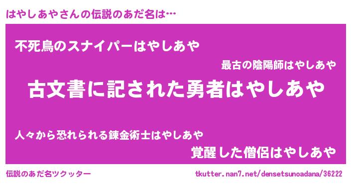 | ヒーロー風カッコイイあだ名 | 『ネオハヤシアヤ』『仮面ハヤダー』 |