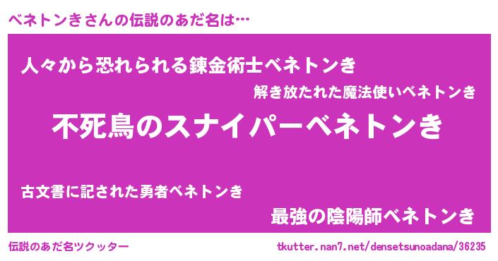 | ポケモン風あだ名 | 『ベネキング』『ベーネイ』 |