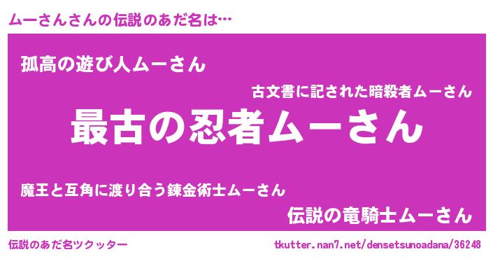 | 意味不明あだ名 | 『ムーさんフォーエバー』『自称ムーさん』 |