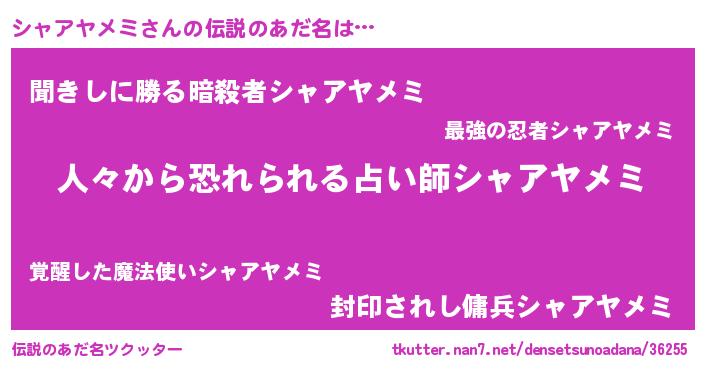| ヒーロー風カッコイイあだ名 | 『正義の使者シャアヤメミ』 |