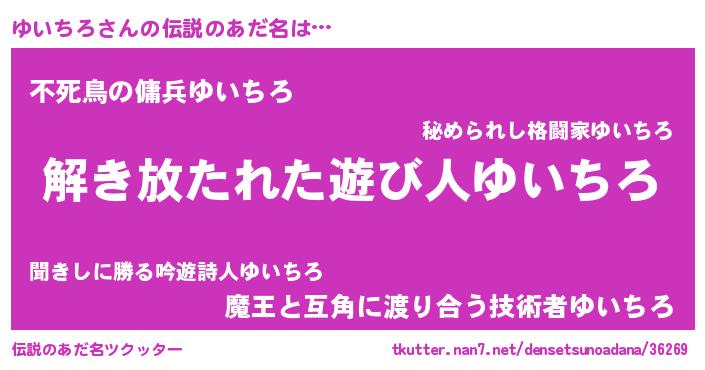 | ヒーロー風カッコイイあだ名 | 『銀牙騎士ユイ』『スーパーユイチロ』 |