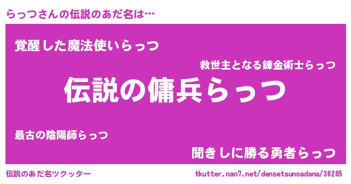 | 女子向けラノベタイトル風あだ名 | 『(仮)らっつのやんごとなき事情』 |