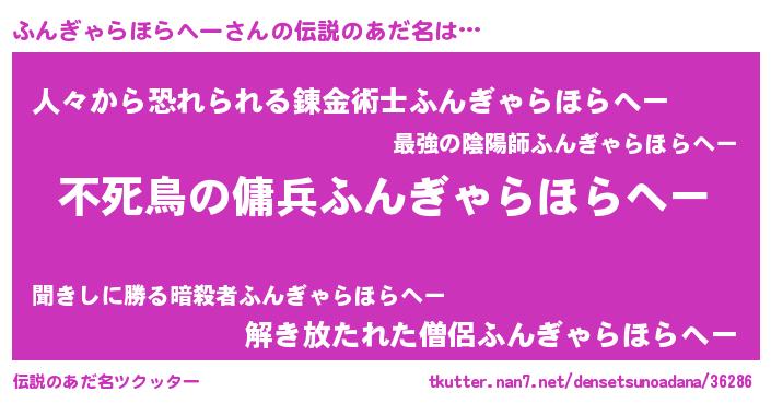 | 女子向けラノベタイトル風あだ名 | 『闇のふんぎゃらほらへー』 |