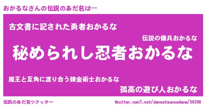 | ヒーロー風カッコイイあだ名 | 『ウルトラおかるなマン』『ネオオカルナ』 |