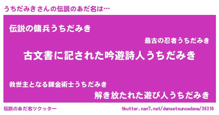 | 意味不明あだ名 | 『自称うちだみき』『永久保存うちだみき』 |