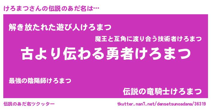 | ヒーロー風カッコイイあだ名 | 『ネオケロマツ』『魔戒騎士ケロ』 |