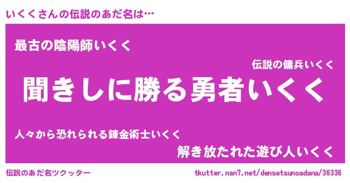 | 男性向けラノベタイトル風あだ名 | 『いくくという概念が存在しない退屈な世界 』 |