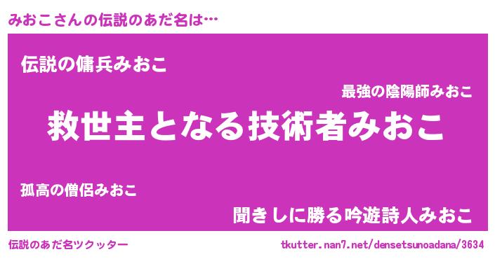 | 男性向けラノベタイトル風あだ名 | 『うちのみおこが世界を掌握している!』 |