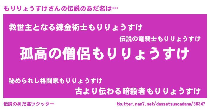 | 意味不明あだ名 | 『自称もりりょうすけ』 |