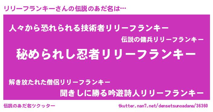 | ファンタジー風あだ名 | 『エターナルリリーフランキーー』 |