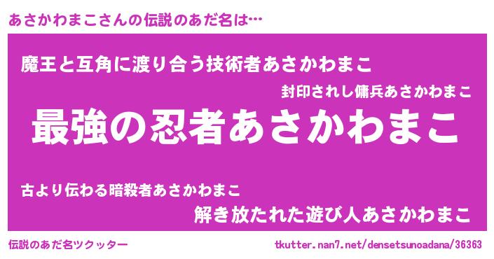 | 意味不明あだ名 | 『あさかわまこフォーエバー』 |