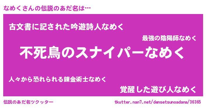 | 意味不明あだ名 | 『住所不定無職なめく(98歳)』 |