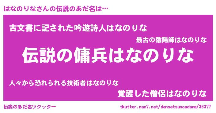 | 男性向けラノベタイトル風あだ名 | 『はなのりなの憂鬱』 |