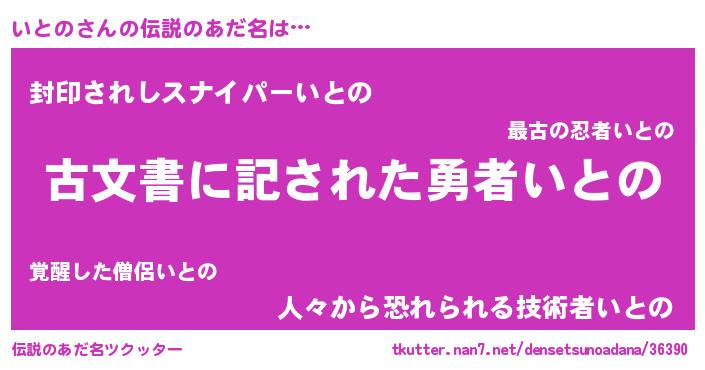 | ヒーロー風カッコイイあだ名 | 『ネオイトノ』『スーパーイトノ』 |