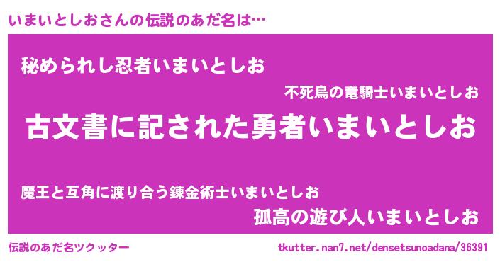 | 意味不明あだ名 | 『永久保存いまいとしお』 |