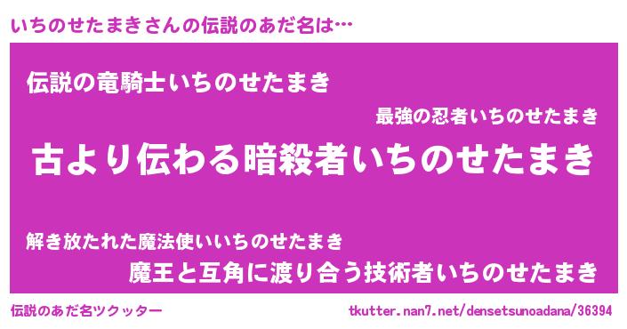 | ヘコむあだ名 | 『いちのせたまき(笑)』『いちにー』 |