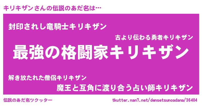 | 意味不明あだ名 | 『住所不定無職キリキザン(4歳)』 |