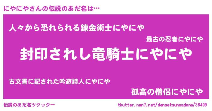 | ヒーロー風カッコイイあだ名 | 『スーパーニヤニヤ』『愛の使者にやにや』 |