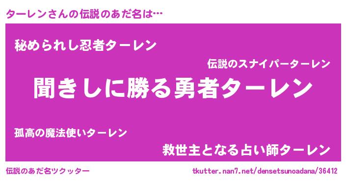 | 意味不明あだ名 | 『永久保存ターレン』『自称ターレン』 |