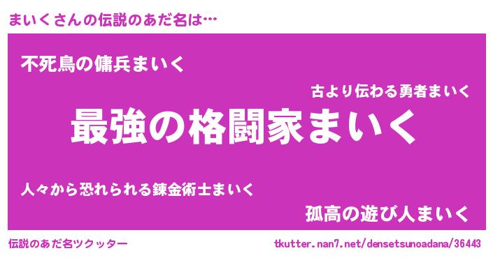 | 意味不明あだ名 | 『自称まいく』『まいくフォーエバー』 |