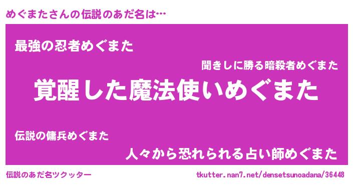 | 男性向けラノベタイトル風あだ名 | 『めぐまたの嫁は女の子じゃないと思った?』 |