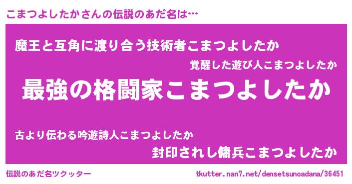 | 意味不明あだ名 | 『住所不定無職こまつよしたか(1歳)』 |