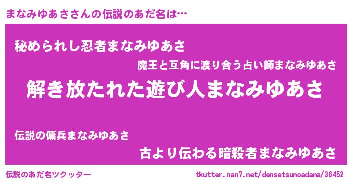 | 男性向けラノベタイトル風あだ名 | 『まなみゆあさの嫁は女の子じゃないと思った?』 |