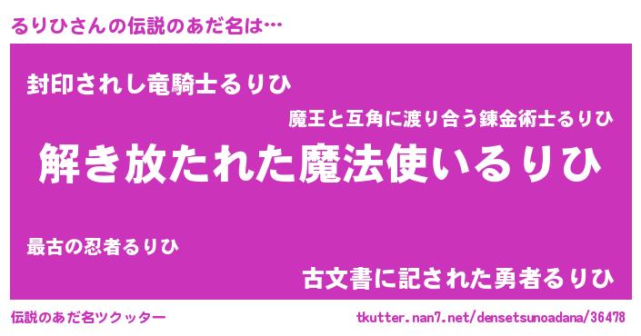 | 意味不明あだ名 | 『とにかく怪しいるりひ』 |