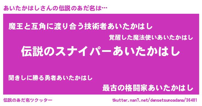 | 胡散臭い通販商品みたいなあだ名 | 『必ず成功する霊験あらたかなお札…その名も「あいたかはし」』 |