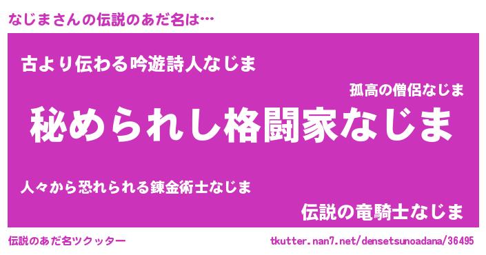 | ポケモン風あだ名 | 『ナジマダネ』『ゼニナジ』 |