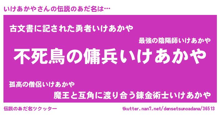 | ヘコむあだ名 | 『いけもー』『いけあかや(苦笑)』 |