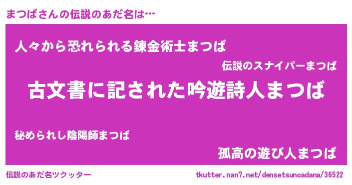 | 意味不明あだ名 | 『永久保存まつば』『めかぶ科まつば属』 |