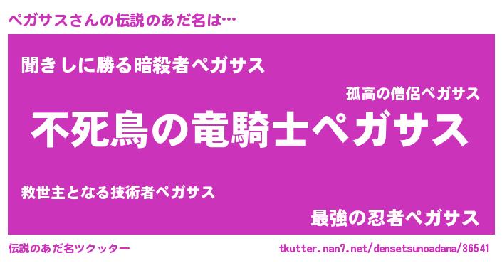 | 男性向けラノベタイトル風あだ名 | 『転生したらペガサスだった件』 |