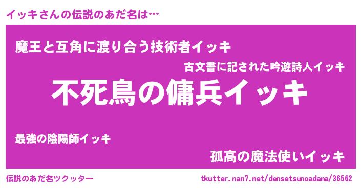 | ヒーロー風カッコイイあだ名 | 『スーパーイッキ』『慈愛の使者イッキ』 |