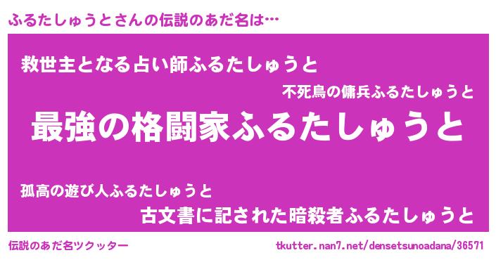 | 男性向けラノベタイトル風あだ名 | 『ふるたしゅうとに滅ぼされるだけの簡単なお仕事です』 |