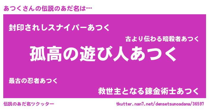 | 女子向けラノベタイトル風あだ名 | 『あつくは平凡を望む』『あつく恋絵巻』 |
