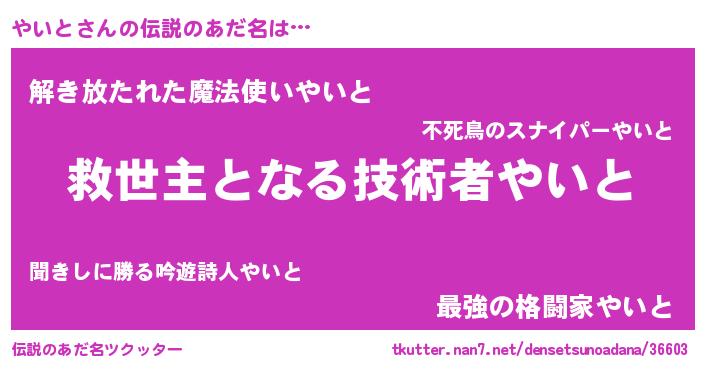 | 男性向けラノベタイトル風あだ名 | 『ノーゲーム・ノーヤイト』 |