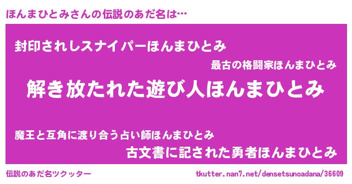 | ヒーロー風カッコイイあだ名 | 『サイバー戦士ホンマヒトミ』 |