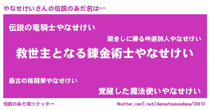 | ヒーロー風カッコイイあだ名 | 『究極戦士ヤナセケイ』『幻影騎士ヤナ』 |