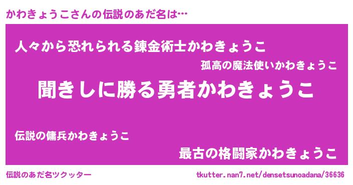 | 意味不明あだ名 | 『永久保存かわきょうこ』 |