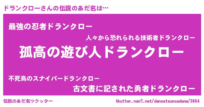 | 胡散臭い通販商品みたいなあだ名 | 『信頼と実績のペンダント…その名も「ドランクロー」』 |