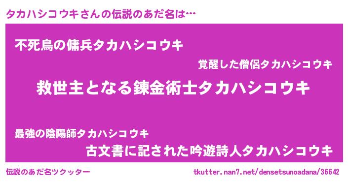 | ヒーロー風カッコイイあだ名 | 『慈愛の使者タカハシコウキ』 |