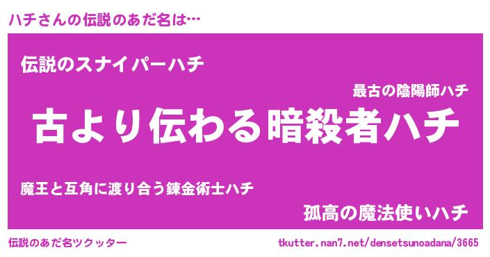 | 胡散臭い通販商品みたいなあだ名 | 『来世でも幸せになれる健康食品…その名も「ハチ」』 |