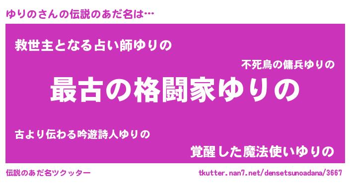 | ヒーロー風カッコイイあだ名 | 『ウルトラゆりのマン』『仮面ユリダー』 |