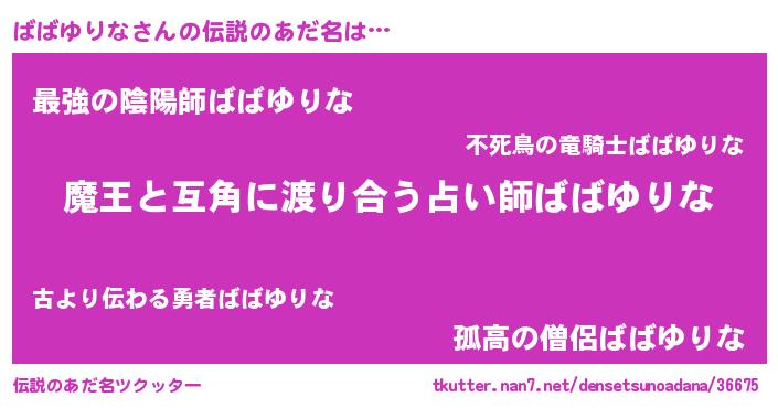 | 女子向けラノベタイトル風あだ名 | 『ばばゆりな恋絵巻』『闇のばばゆりな』 |