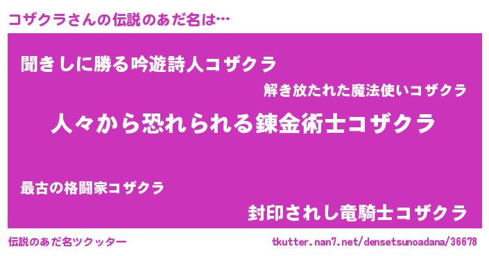 | ヘコむあだ名 | 『コザクラ(震え声)』『コザにー』 |