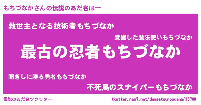 | 意味不明あだ名 | 『住所不定無職もちづなか(39歳)』 |