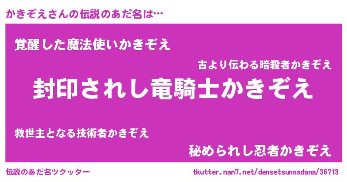 | 男性向けラノベタイトル風あだ名 | 『かきぞえに滅ぼされるだけの簡単なお仕事です』 |