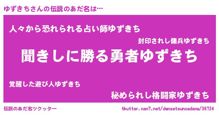 | 意味不明あだ名 | 『永久保存ゆずきち』『自称ゆずきち』 |