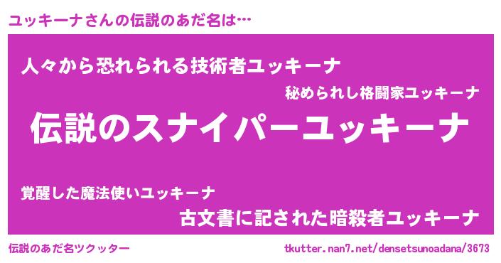 | 女子向けラノベタイトル風あだ名 | 『(仮)ユッキーナのやんごとなき事情』 |
